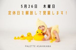 5月26日は定休日を解放して営業! 現時点ではオンライン相談のご案内にまだ空きがあります! 5月は特典がたくさん! 撮影のご予約はホームページまたはお電話にて!