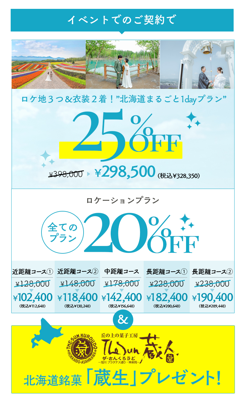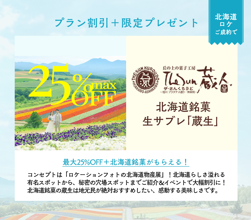 イベント限定で最大25%OFF+北海道銘菓のプレゼントがございます!