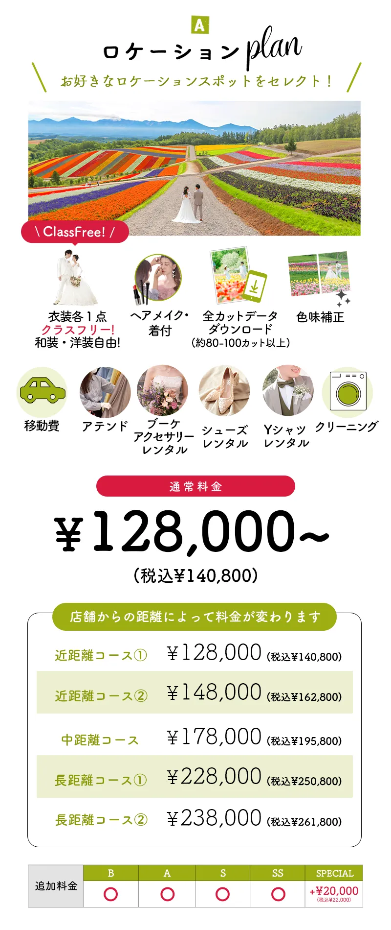 ・衣装クラスフリー&データ80カット以上お渡し&移動費込みの圧倒的コスパ