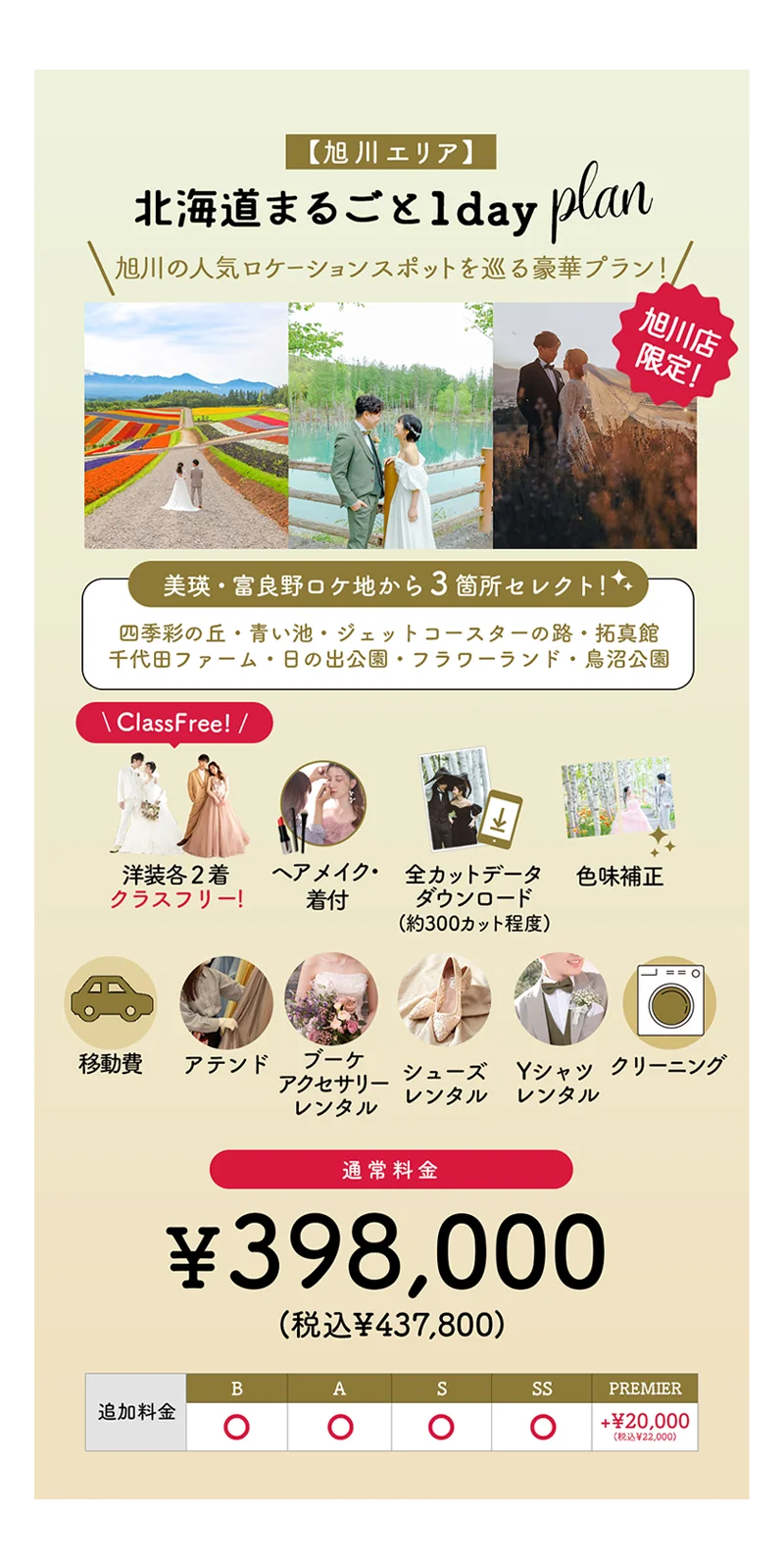 ◯衣装追加料金なしのクラスフリー!(プレミアラインは+¥22,000)