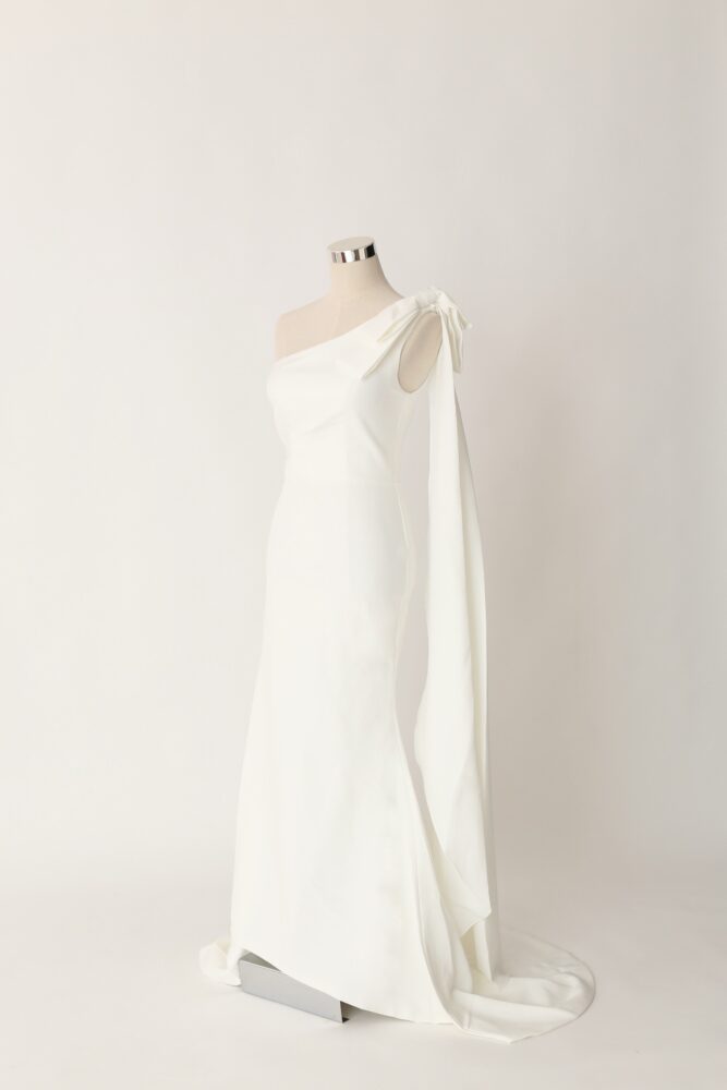 ワンショルダーは片方の肩を出す非対称なシルエットが特徴で、美しいデコルテラインや肩、腕のラインをエレガントに見せる効果があります。