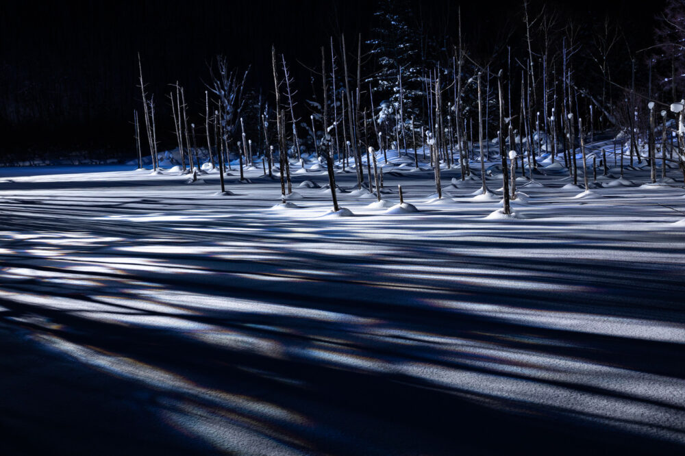実は、同じ美瑛川沿いにある「青い池」も秋冬の夜にライトアップされ、幻想的な青い湖面は絶景です✨