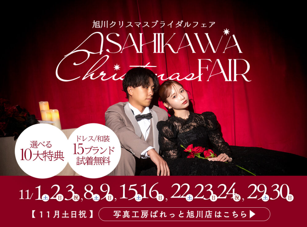 雪景色が特別なウェディングフォトを叶える!20代花嫁さんが憧れる「冬ロケーションフォト」の魅力をご紹介します。真っ白な世界での撮影は、まるで映画のワンシーンのよう。写真工房ぱれっと旭川店の冬ロケーションプランと予約受付情報をチェックして、一生に一度の思い出を作りましょう。