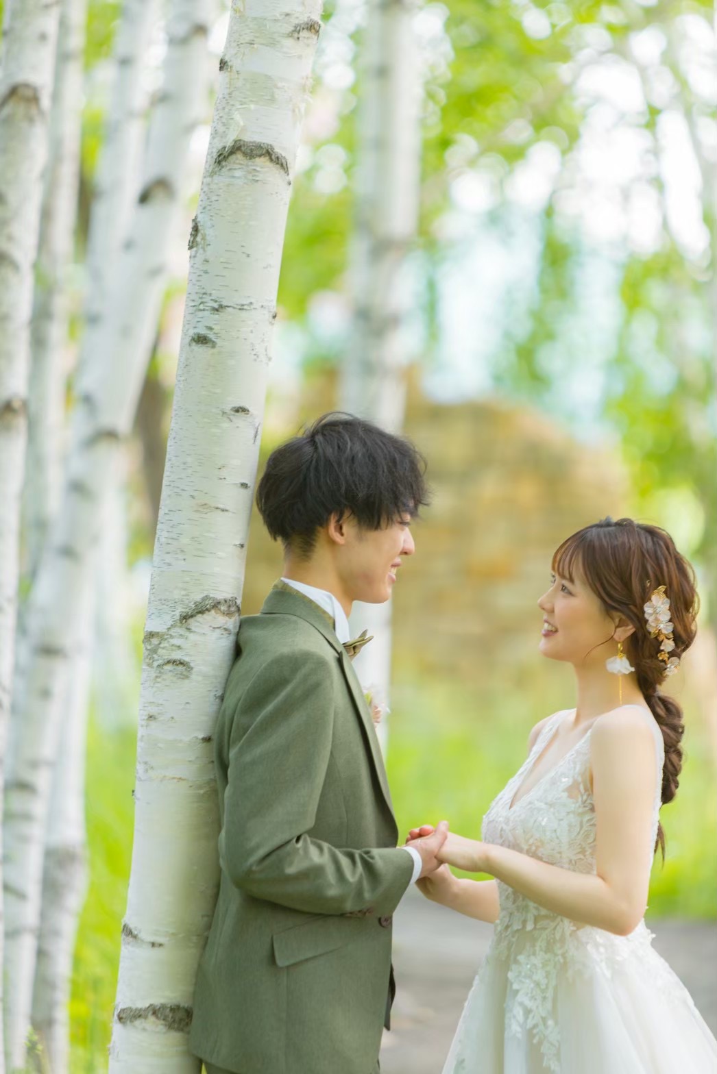旭川での撮影の最大の魅力は、季節ごとに表情を変える豊かな自然です。広大な公園や美しい並木道は、おふたりの自然な表情を引き出す最高の舞台。また、市内には歴史を感じさせるレトロな建築物もあり、クラシカルな雰囲気を楽しむこともできます。