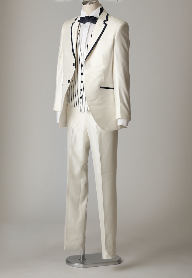 ボタンや蝶ネクタイ、ベスト・ジャケットのラインで