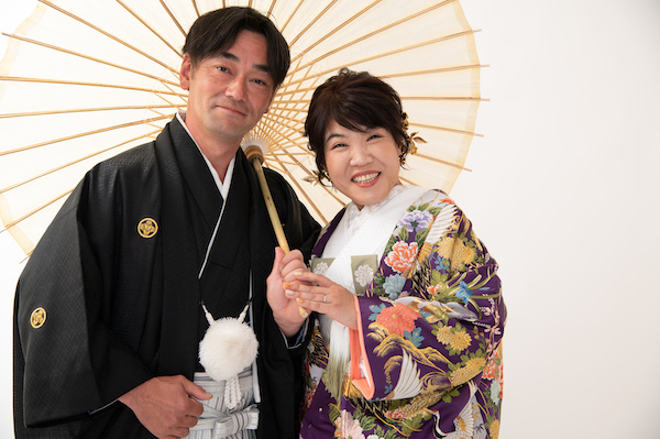 黒の紋付袴と紫の打掛を選んで頂きました!