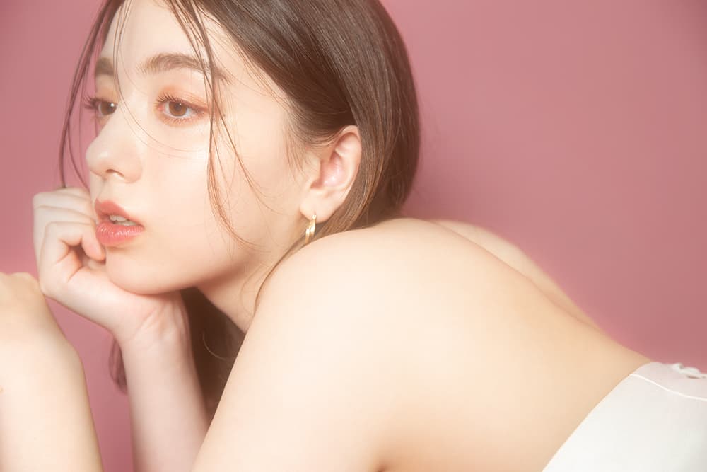 ツヤ肌にじゅわっとチークで幸せ感溢れるメイクに。