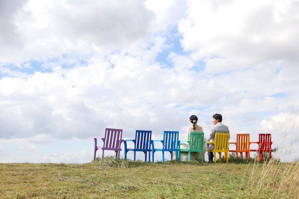 There is no doubt that the back view of the two of them overlooking the tranquil scenery that spreads endlessly will be a photo full of hope.