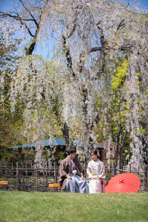 札幌・旭川・帯広の観光地に店舗をかまえる写真工房ぱれっと。 北海道旭川市の桜の満開時期は4月下旬から5月のGWにかけて。 満開の桜の下、ウェディング撮影を行いませんか?