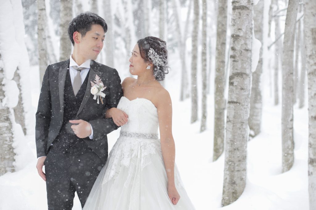 どんな季節でもいつでも白い白樺の木はまるでお二人の明るい未来を描いているようです。
