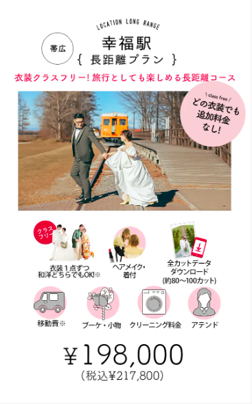 札幌・旭川・帯広の観光地に店舗をかまえる写真工房ぱれっと。 今回はウェディングフォトにぴったりの帯広エリア『幸福駅』をご紹介いたします!