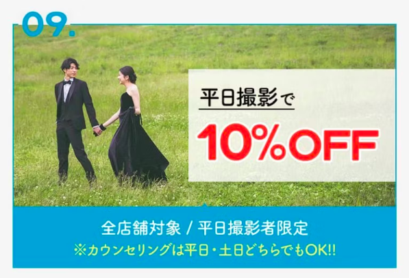 平日にご撮影ご予約をしたお客様限定!プラン料金10%オフ!