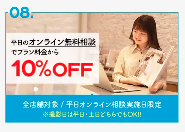 ▫︎平日のオンライン相談限定!プラン料金から10%オフ!