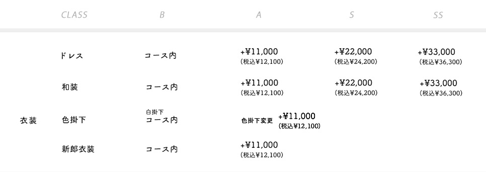 A5.データまるごとプランやデータ&アルバムプランは下の画像のようにお衣装クラスが分かれております!