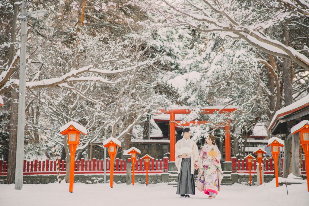 雪景色の中で朱塗りの鳥居が目を惹く素敵な仕上がりが叶うところにあります・:*+.