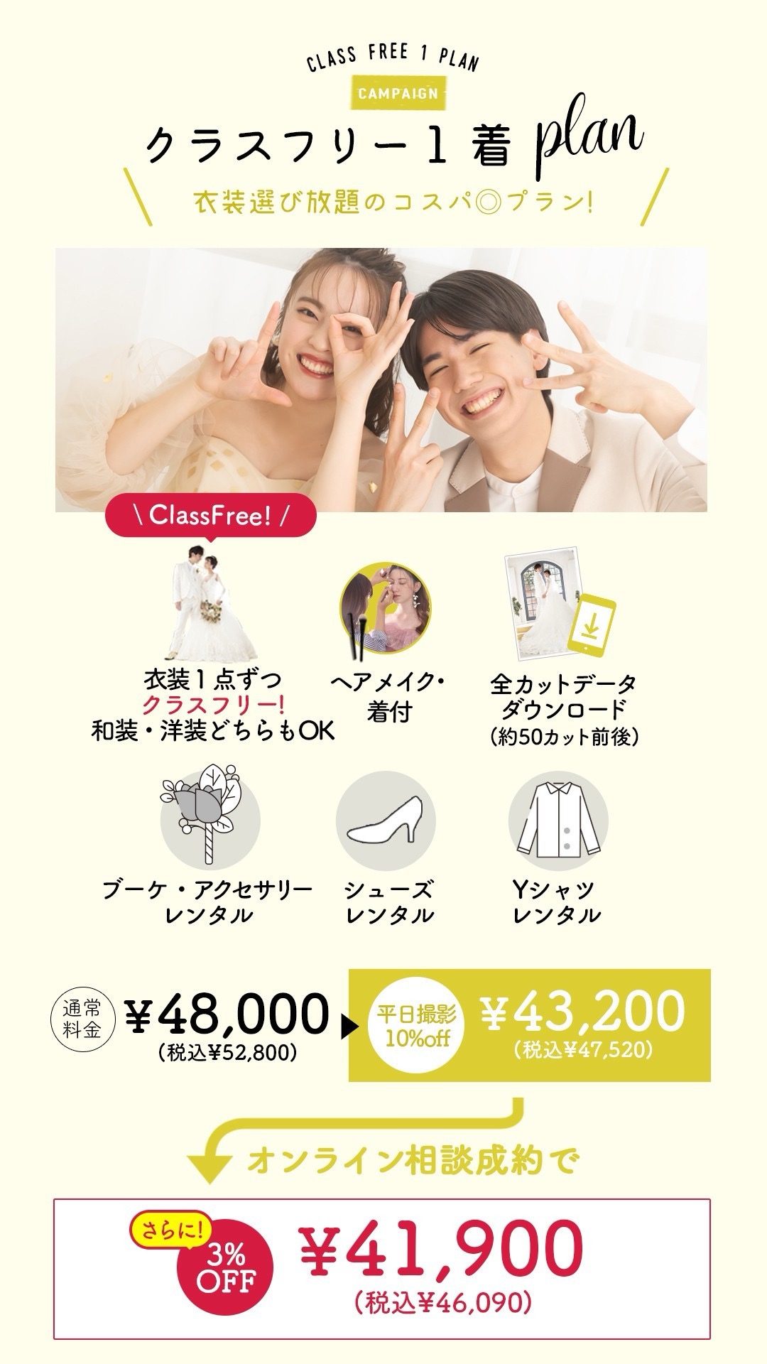※こちらのキャンペーン使用の場合、スペシャル衣装のお値引きはできかねます。