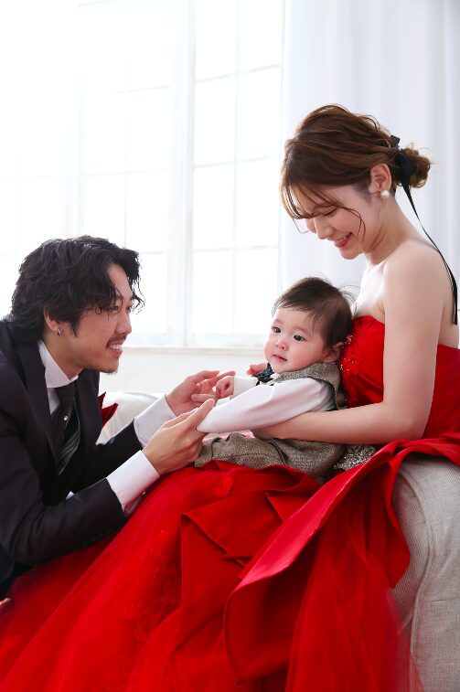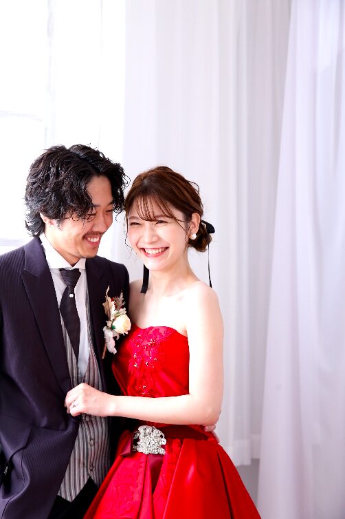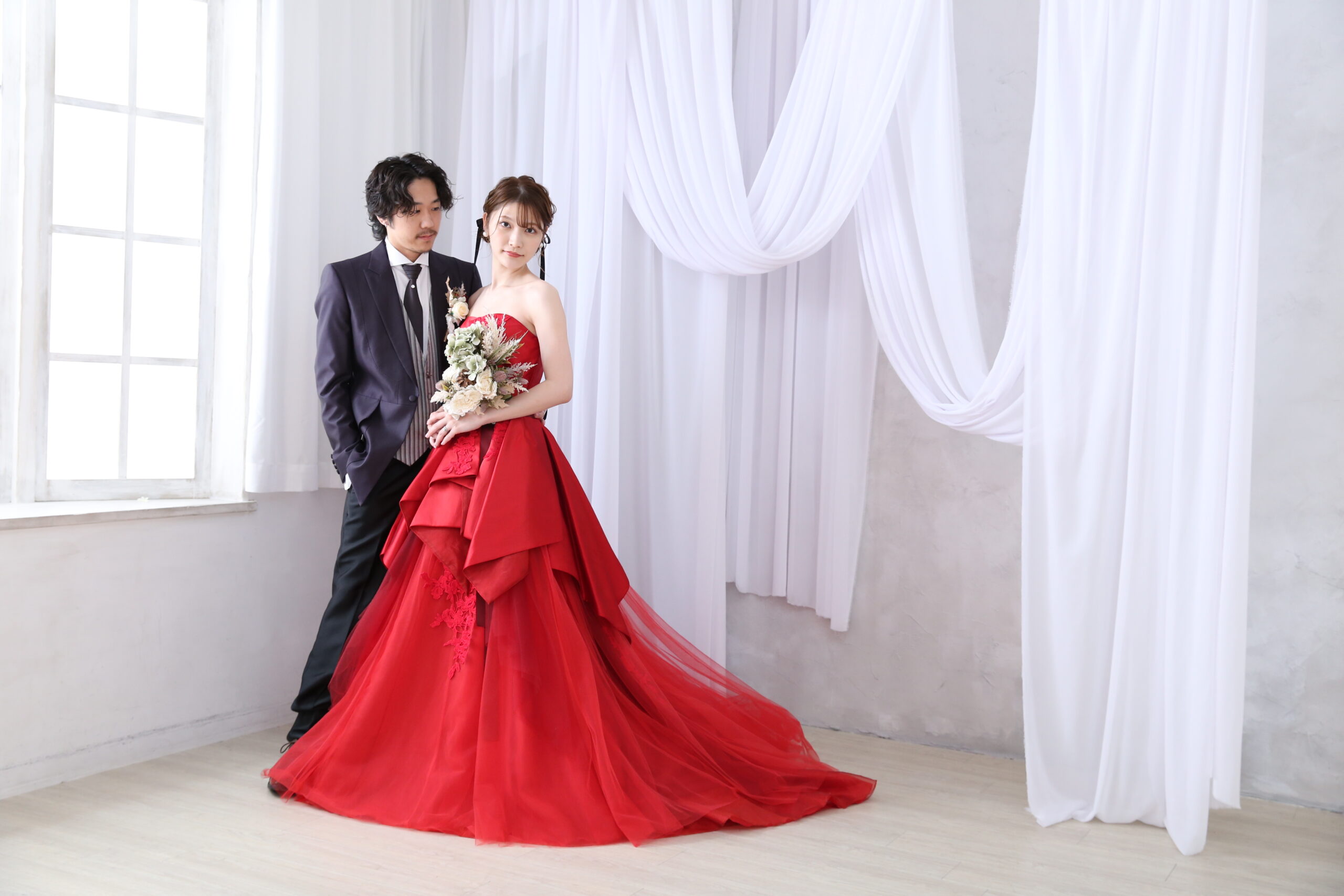 透明感のある空間に赤のドレスが映えますね・・・♡
