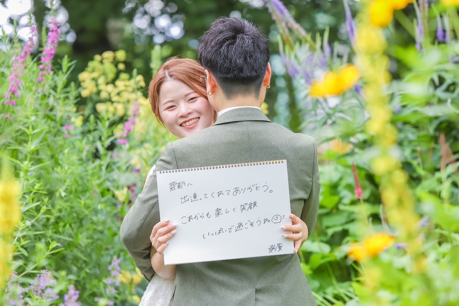 こちらは事前にお二人でお互いにメッセージを書いて写真を見たときに初めてメッセージの内容が