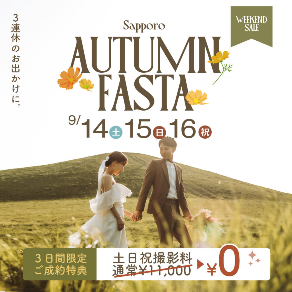 2024/09/13【旭川ウェディングフォト】明日からとてもお得なセールが始まります!!お見逃しなく✨