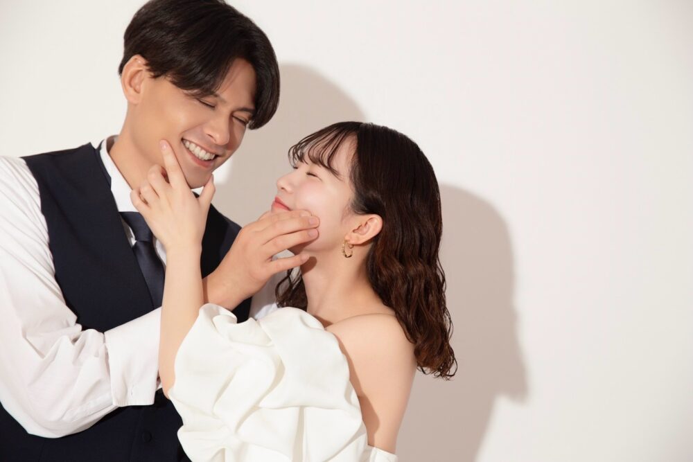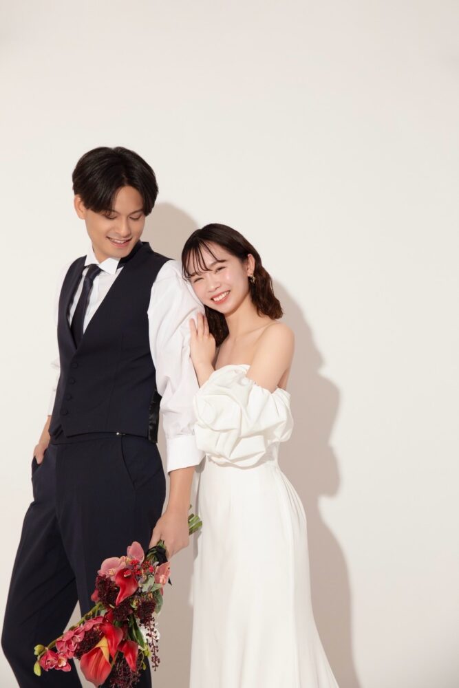 こちらはペーパー背景でシンプルですが、シンプルだからこそお二人の空気感が最大限引き出されるビジュアル。