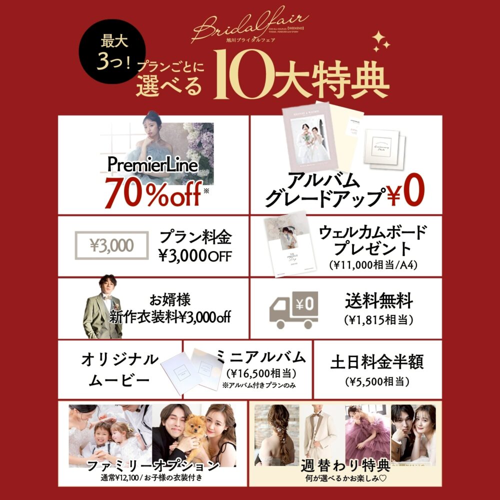 ⚠️PremierLine70%OFFは1dayアルバムプランの場合の追加料金¥40,000から70%OFF(¥28,000割引)でのご提供となります。