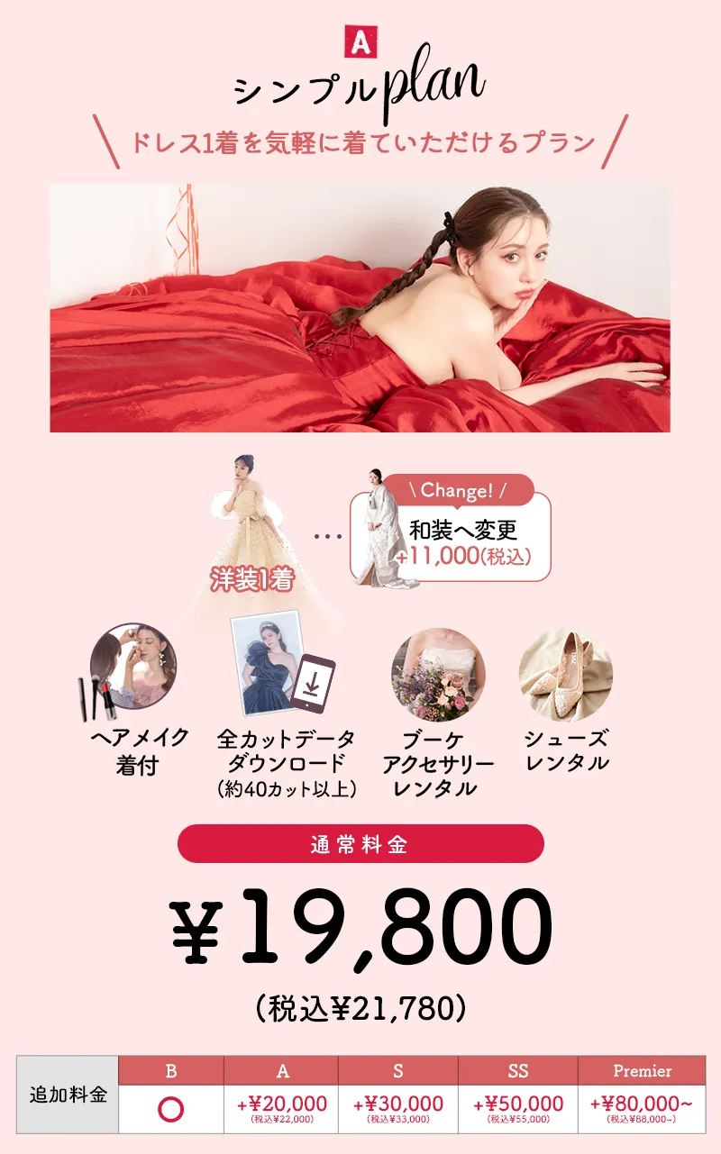 ハイクオリティなヘアメイクと衣装 プロのヘアメイクアーティストが、ご希望に合わせて「自分だけの可愛い」を最大限に引き出します。ウェディングドレス、カラードレス、和装(白無垢・色打掛)など、衣装のラインナップも豊富です。