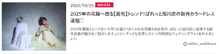 この度、2025年11月の毎週末に【札幌ブライダルフェア】の開催が決定いたしました!! 最新衣装の見学&無料試着会や、嬉しいプレゼント、限定特別プランを多数ご用意しております!
