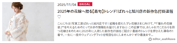 写真工房ぱれっと旭川店での「来店カウンセリング」を徹底解説!通常プラス料金がかかるハイグレードな「Premier」衣装の試着体験や、プラン相談でフォトウェディングの不安を解消しませんか?旭川・美瑛・富良野エリアでの撮影を考えているプレ花嫁様必見です。