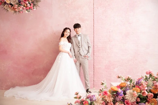 シンプルな背景から、お花に囲まれたロマンチックなシチュエーションまで、