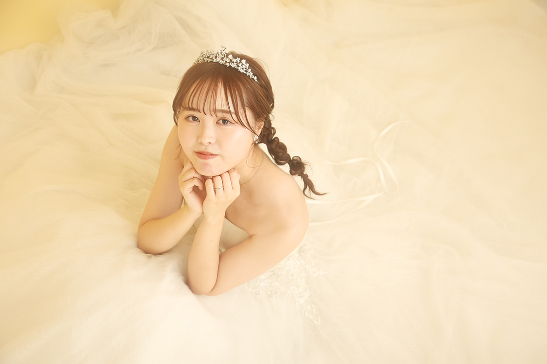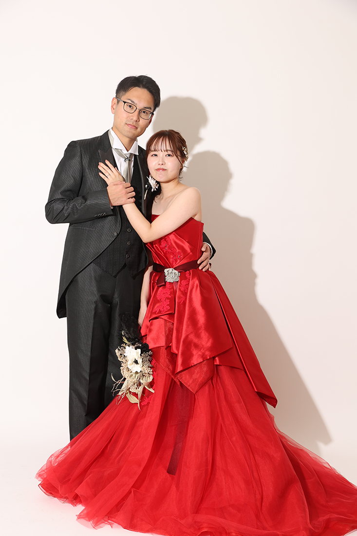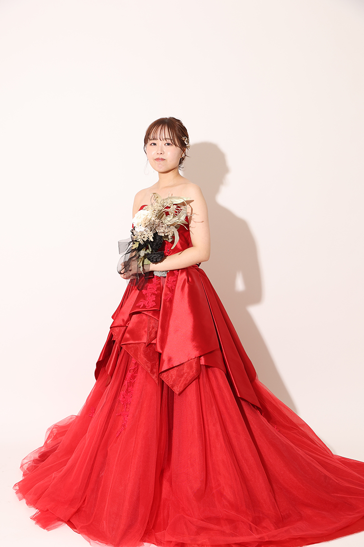 続いてはシンプルな白背景にキリリと生えるカラードレスで撮影