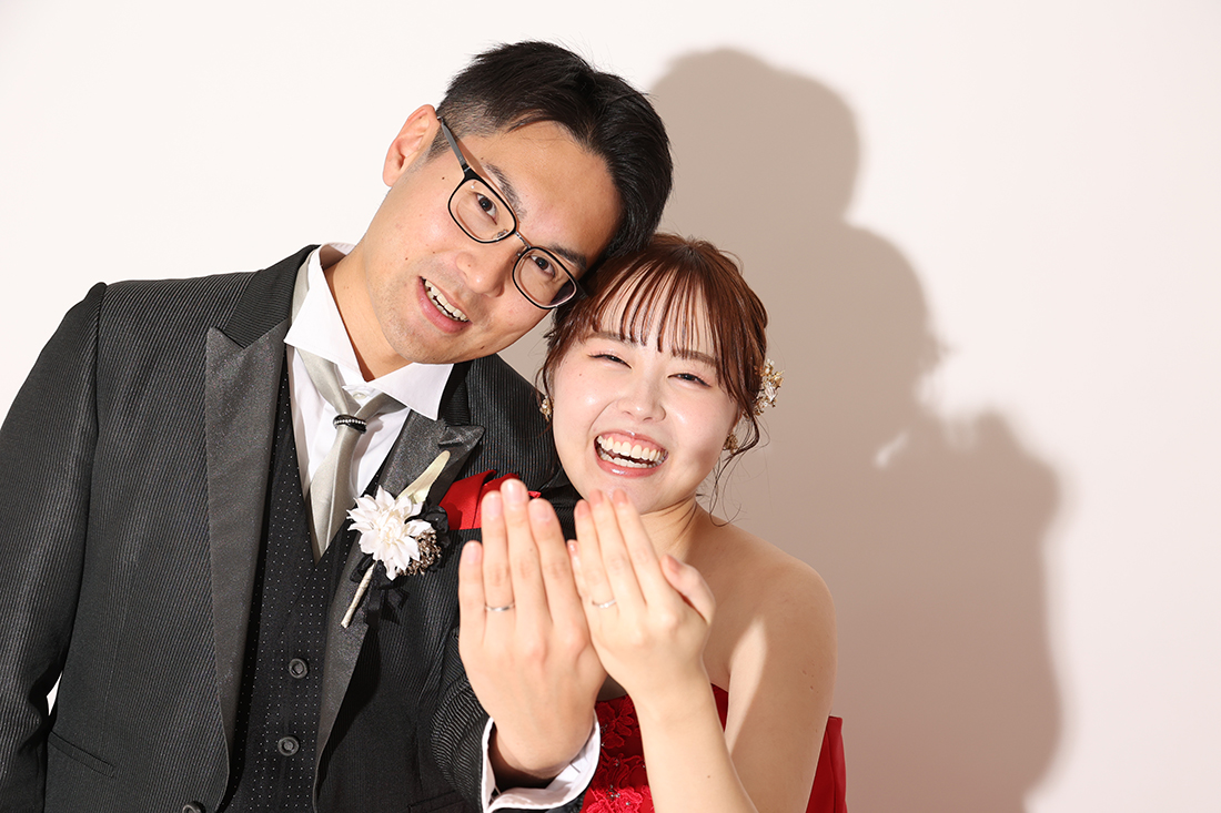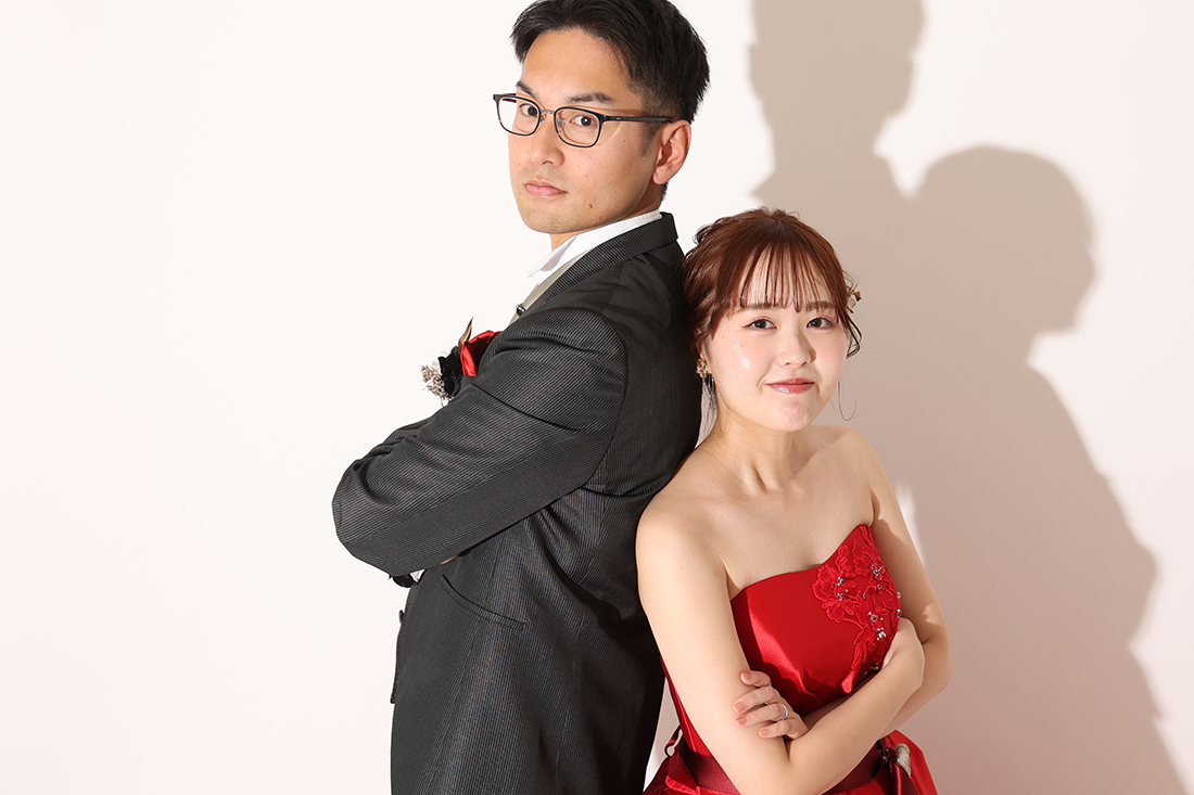パキッとしたライティングに似合うポーズでスタイリッシュに撮影しました。お二人ともカッコよくキマってます!