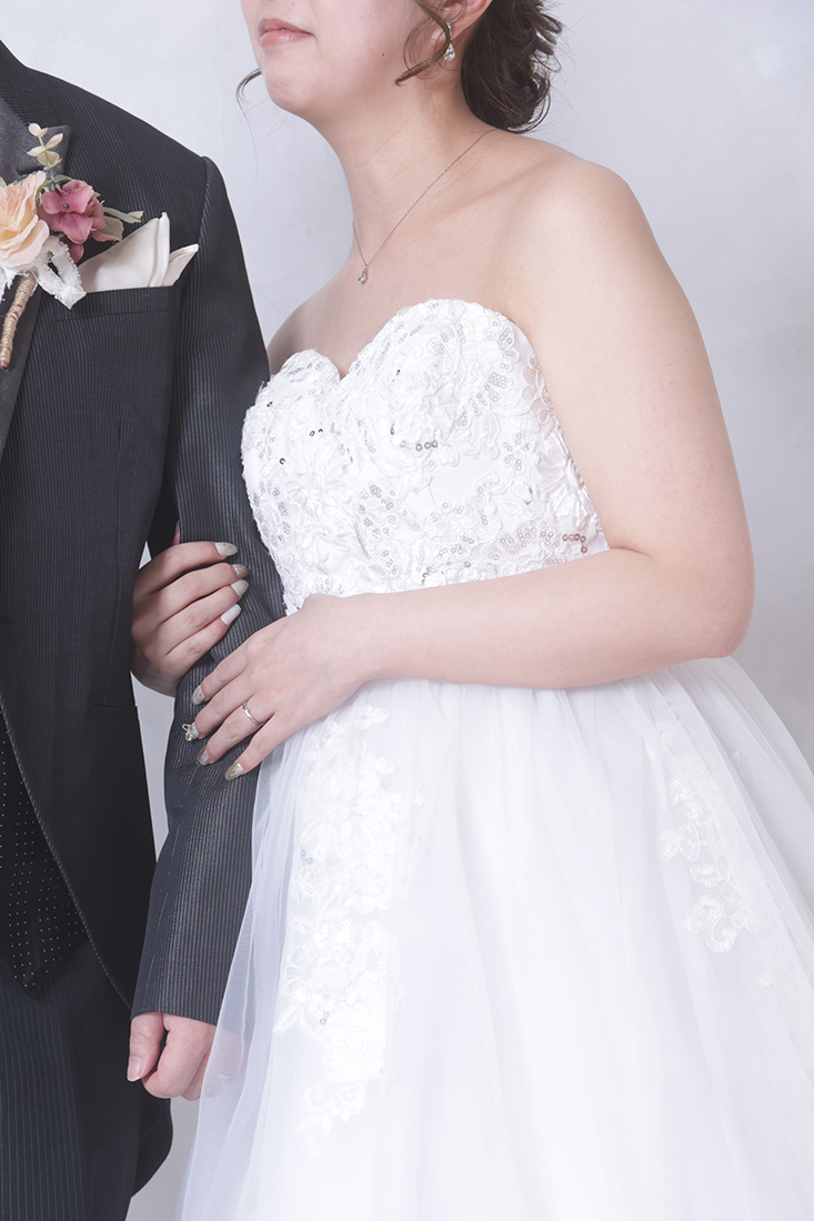 「マタニティだと選べるドレスが少ないかも…」と心配される方もいらっしゃいますが、ご安心ください!写真工房ぱれっと旭川店では、お腹を締め付けないエンパイアラインのドレスや、背中の編み上げでサイズ調整が可能なドレスを豊富に取り揃えています。