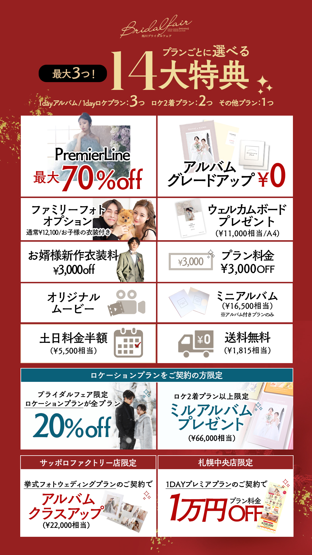 旭川, フォトウェディング, 3月キャンペーン, 14大特典, プレミア衣装, 写真工房ぱれっと