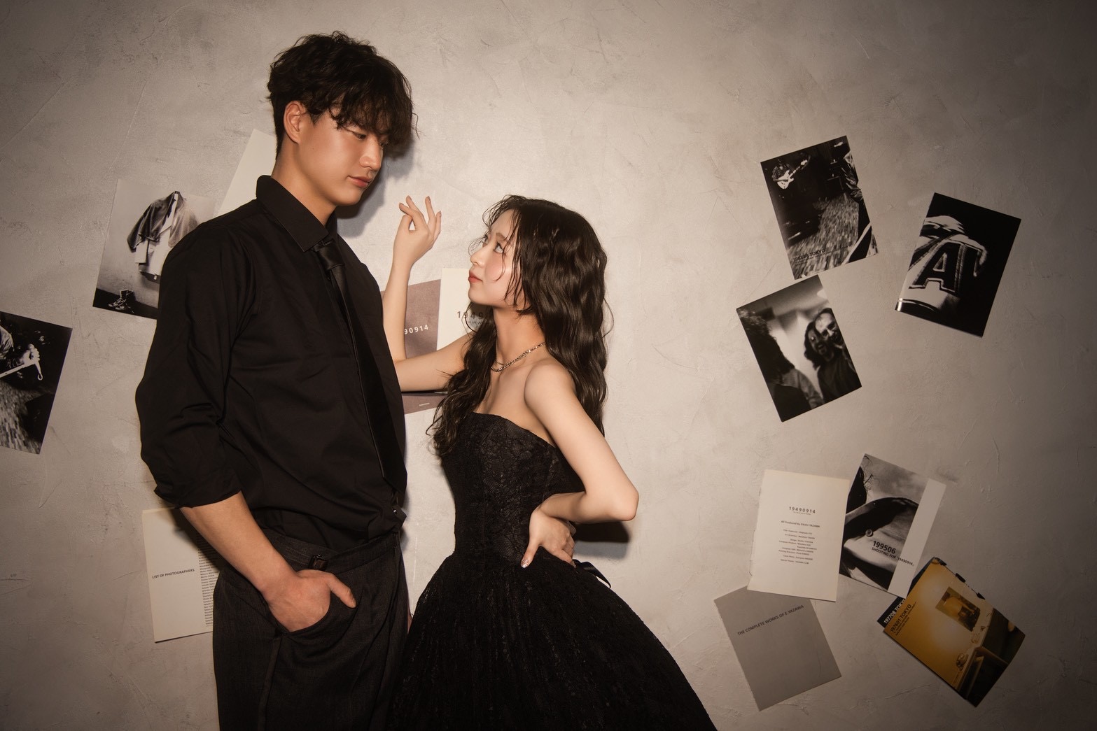 SNSでも大人気の韓国風フォト。シンプルで余白を活かした背景は、お二人の表情をより一層引き立てます。自然光に近い柔らかなライティングと、主張しすぎないパステルカラーの背景は、今っぽさ抜群です。