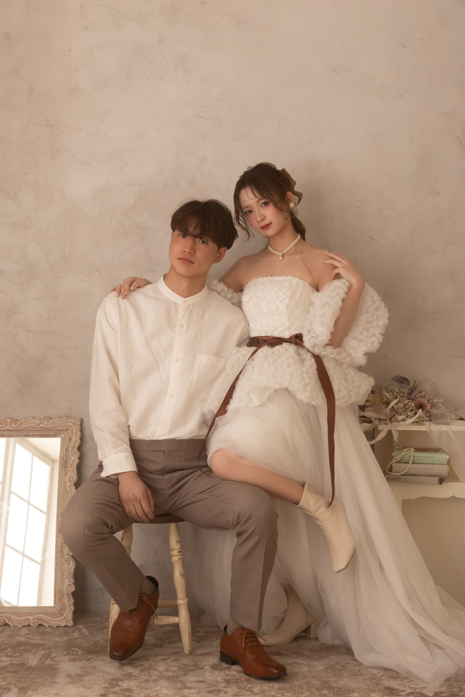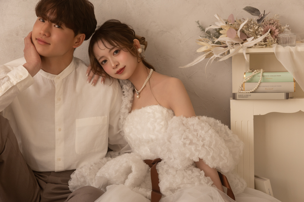 当スタジオでは、お肌の質感を活かした丁寧なレタッチにこだわっています。ただ加工するのではなく、おふたりの魅力を最大限に引き出し、まるでおしゃれな海外雑誌のような「洗練された空気感」を作り出します。撮影技術と編集技術、この両方が揃って初めて完成するクオリティを、ぜひ体験してください。
