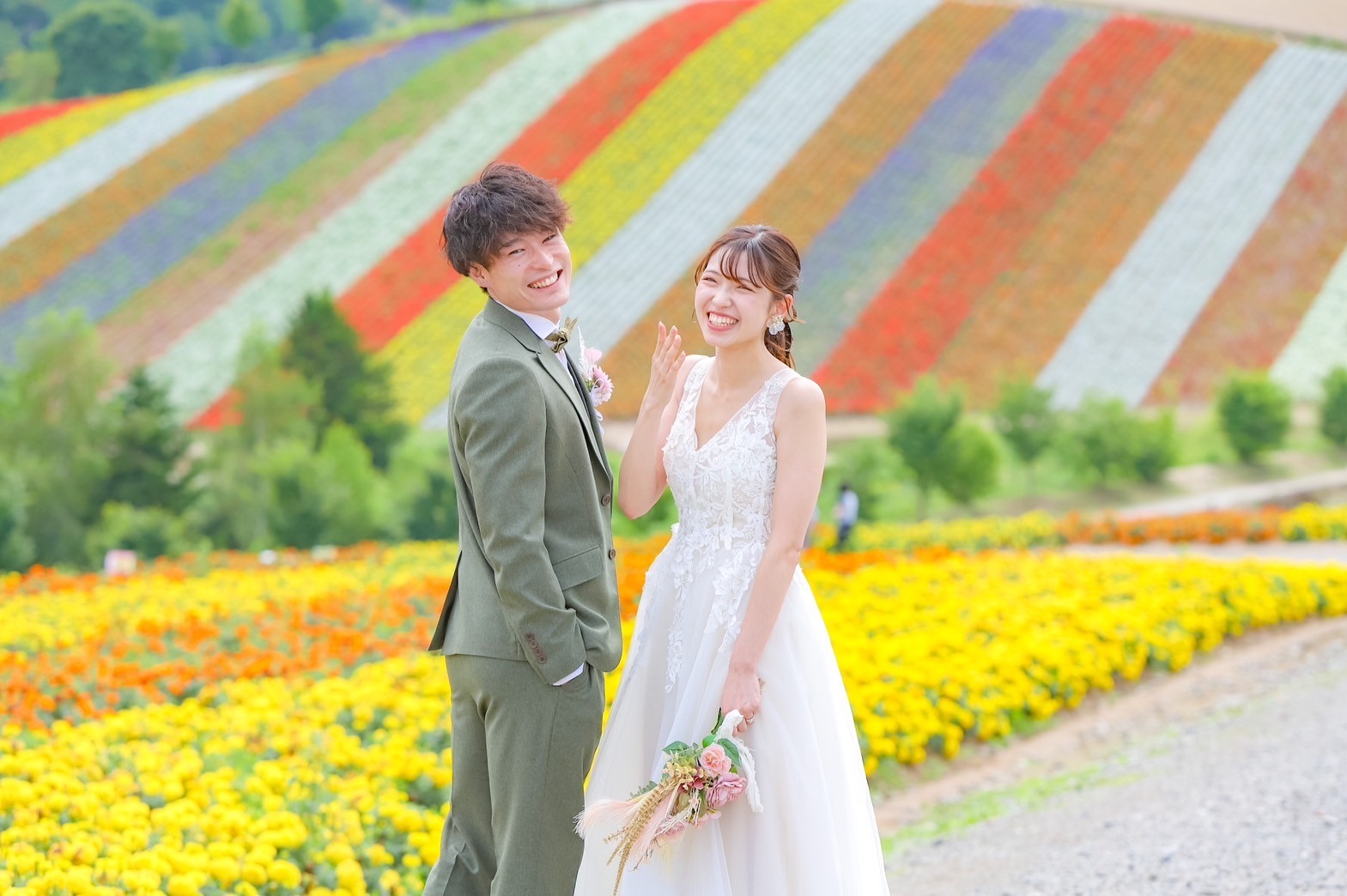 こんにちは! 北海道旭川市にある写真工房ぱれっと旭川店です! 現在ロケーション撮影のご予約が続々と増えていて撮影したいと考えている方がいましたらぜひお早めにご予約ください! 美瑛や富良野での撮影が人気となっております✨ 今回は先日美瑛の四季彩の丘とジェっっとコースターの路で撮影された素敵なお客様をご紹介します❤︎