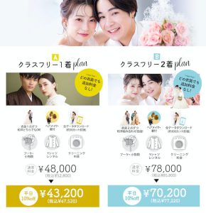 9月からスタートしたクラスフリープランが大好評だった為、更に引き続き続行中!どのお衣装を着ていただいてもお衣装の追加料金はなし!とってもお得なプランになっておりますのでお見逃しなく!