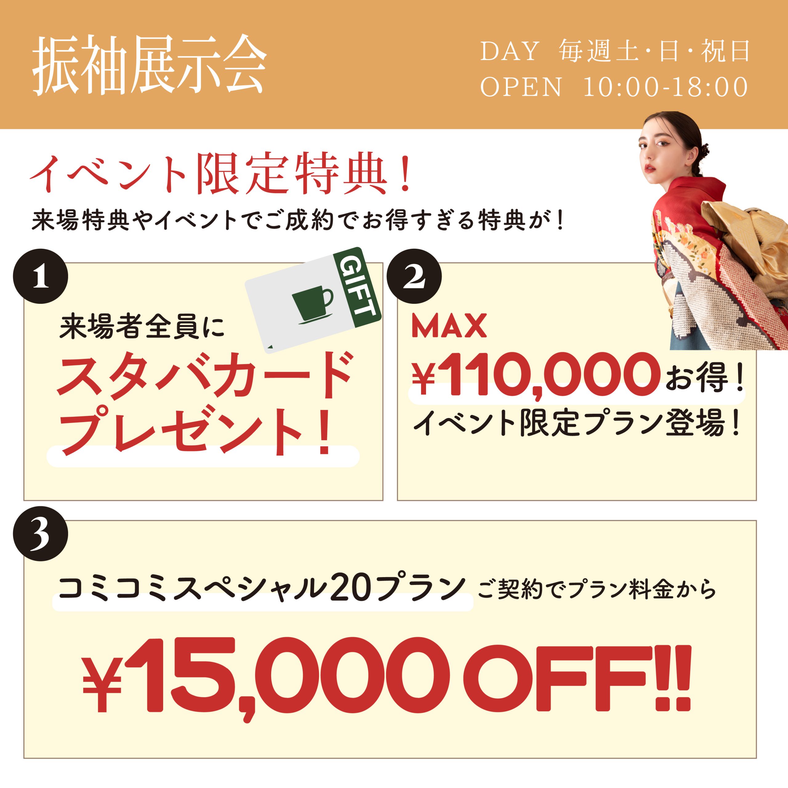 振袖フェアも毎週土日開催内容