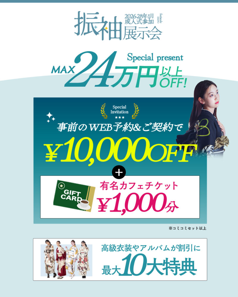 ☕️有名カフェチケット¥1,000プレゼント🎁✨※振袖コミコミプランorコミコミ20プランご契約の方限定!※