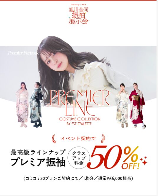 コミコミ20プランご契約で、プレミアライン振袖50%OFF(1着分)
