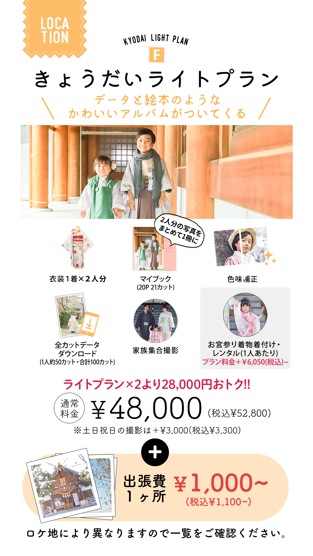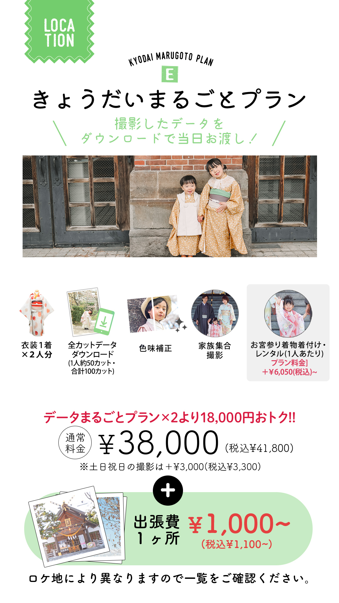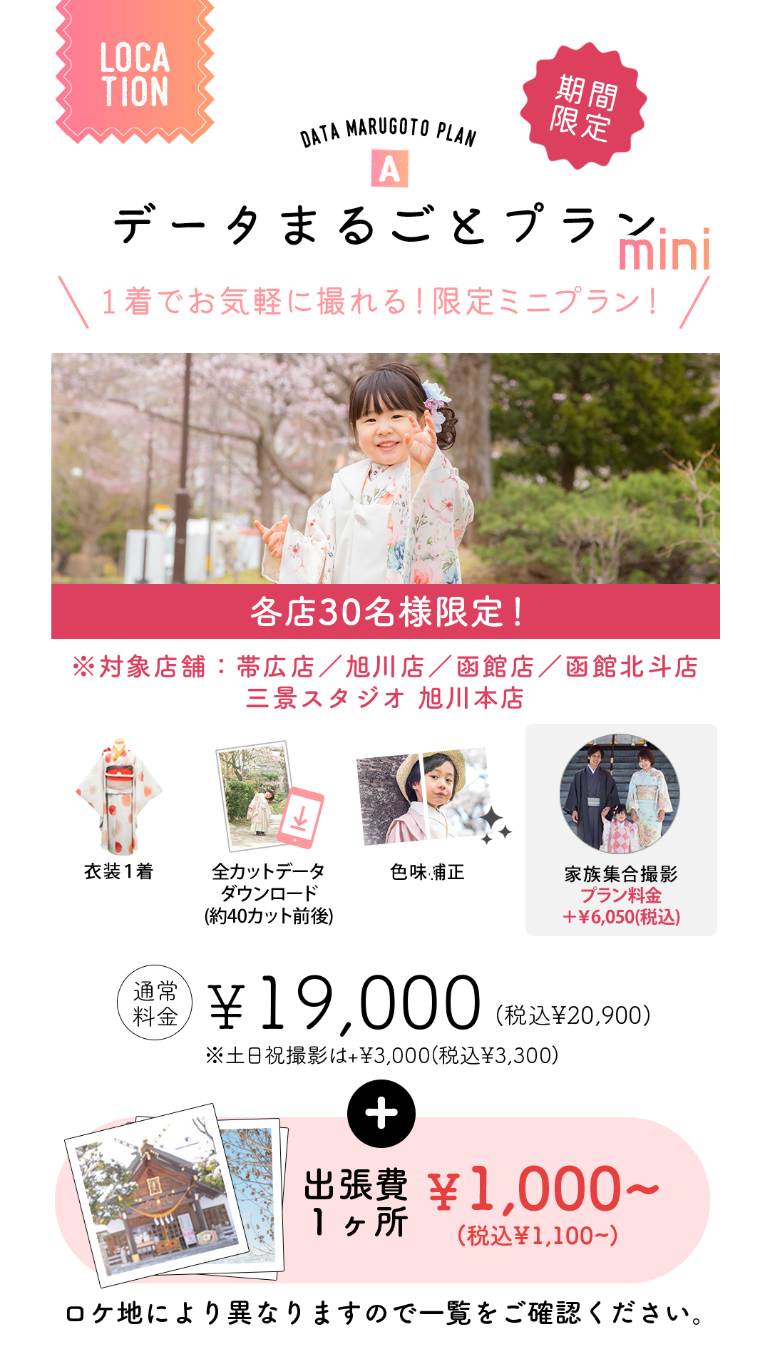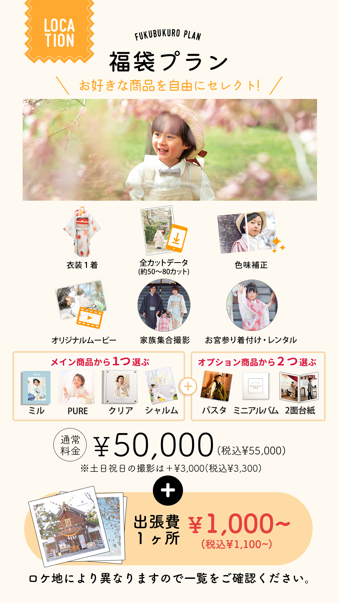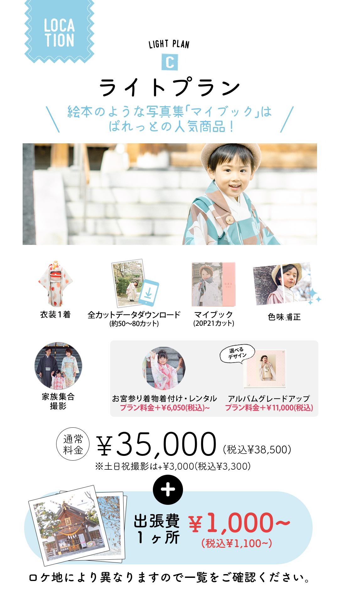 →七五三【データまるごとプラン】は通常お宮参りご希望の方には¥6,050(税込)の追加料金を頂いております。