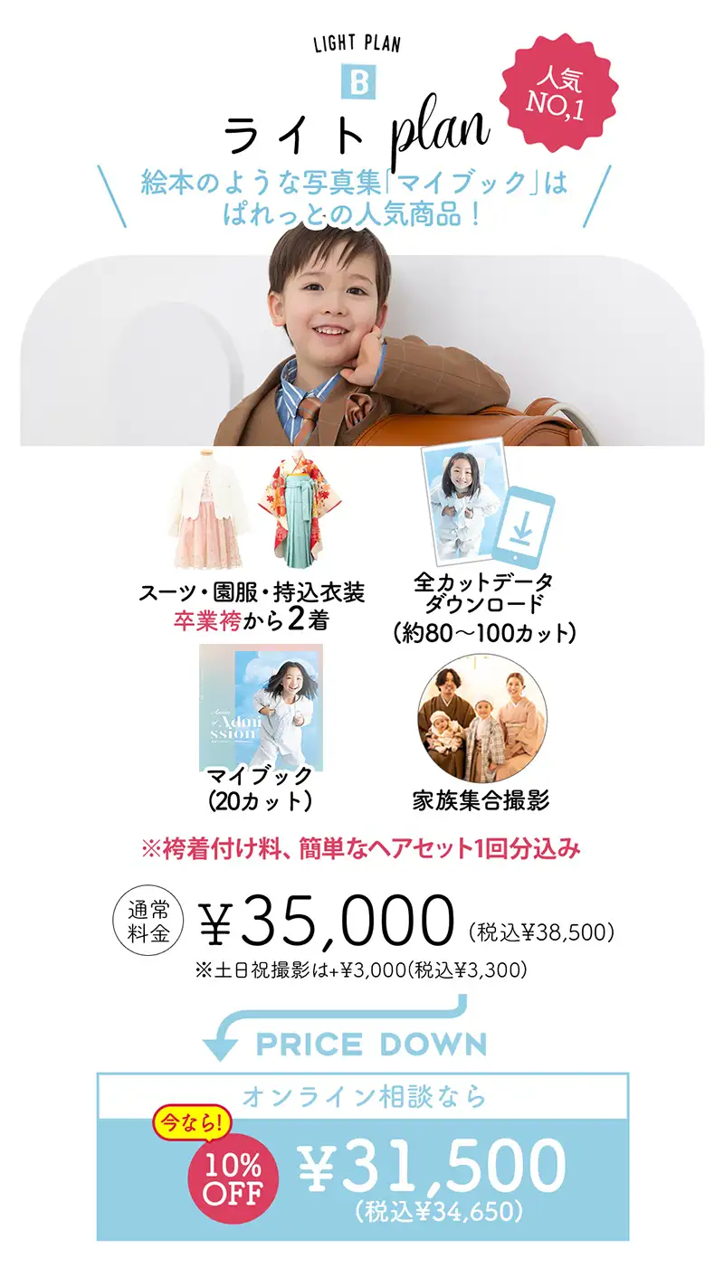 ぱれっと基本プランでは、入学記念と七五三記念はそれぞれ別のもの。
