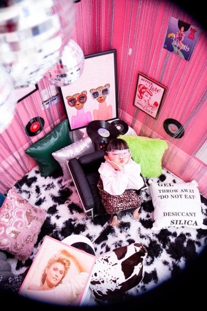 本物のレコードを背景に使用し、ミラーボールと額縁、特徴的な様々なインテリアを組み合わせることでよりこのスタジオの世界観を作り出しました⭐️