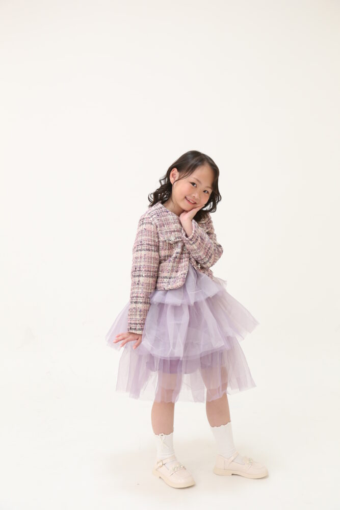 上品な印象をあおる生地はお子様の晴れ舞台にぴったり!
