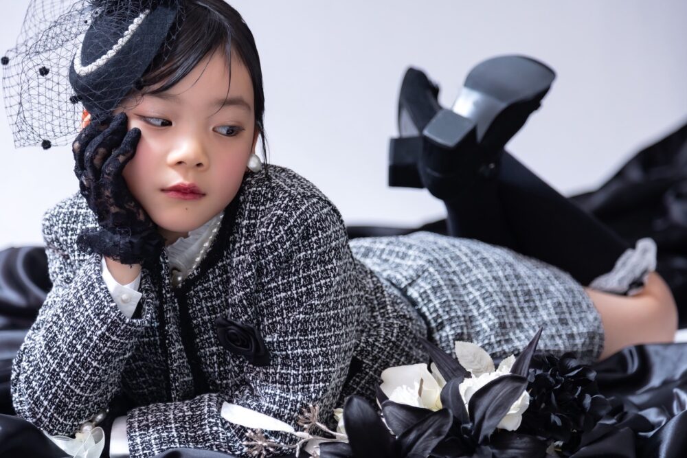「入学写真=明るく元気な色使い」というイメージを覆す、モノトーンを基調とした洗練された世界観。少し大人びた表情を見せるお子様の「今」を、最高におしゃれな形で残してみませんか?