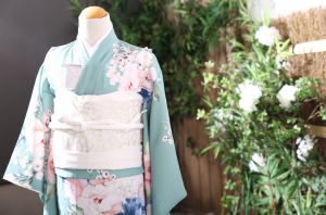 七五三3歳 新作和装が入荷しました!! 新背景*ピクニック*と相性抜群のボタニカル柄の着物! こちらは男女兼用ですよ♪ イマドキ和装を新しいおしゃれな背景で撮影しましょう!!