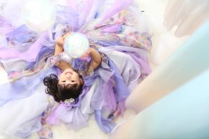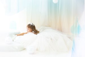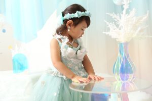 旭川店の新作衣装ご紹介! 新背景*オーロラ*の背景とふわふわの純白ドレスが最高に可愛い!! 七五三のドレスを撮るなら絶対オススメの組み合わせです♪