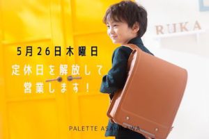 5月26日は定休日を解放して営業! 現時点ではオンライン相談のご案内にまだ空きがあります! 5月は特典がたくさん! 撮影のご予約はホームページまたはお電話にて!入学撮影は5月中まで!