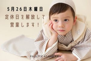 5月26日は定休日を解放して営業! 現時点ではオンライン相談のご案内にまだ空きがあります! 5月は特典がたくさん! 撮影のご予約はホームページまたはお電話にて!