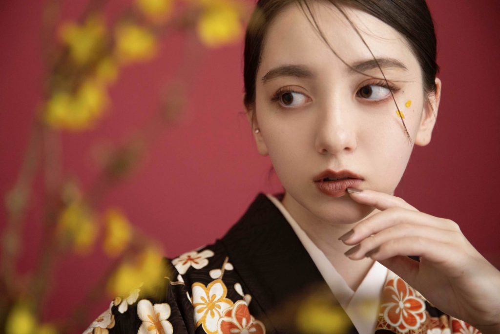 マットな質感のメイクで凛とした大人なハタチを表現。